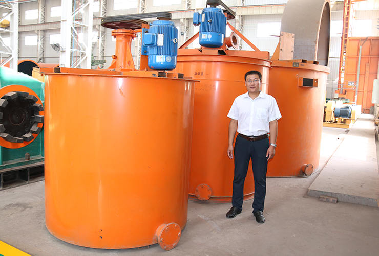該攪拌桶是由電動(dòng)機(jī)三角帶傳動(dòng)帶動(dòng)葉輪旋轉(zhuǎn),將藥物和礦漿充分 混合均勻,增加藥劑作用反應(yīng)時(shí)間強(qiáng)化藥物反應(yīng)質(zhì)量的必要設(shè)備,本 機(jī)適用于選礦業(yè),也可用作各種化工的配料攪拌。