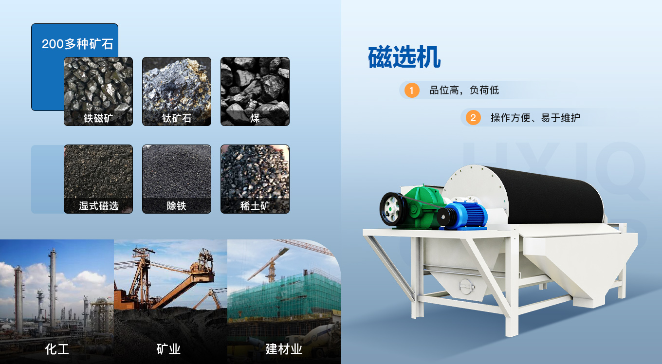 適用物料:鐵礦石、赤鐵礦、磁鐵礦、銅礦石、金礦石、煤、石英石等。