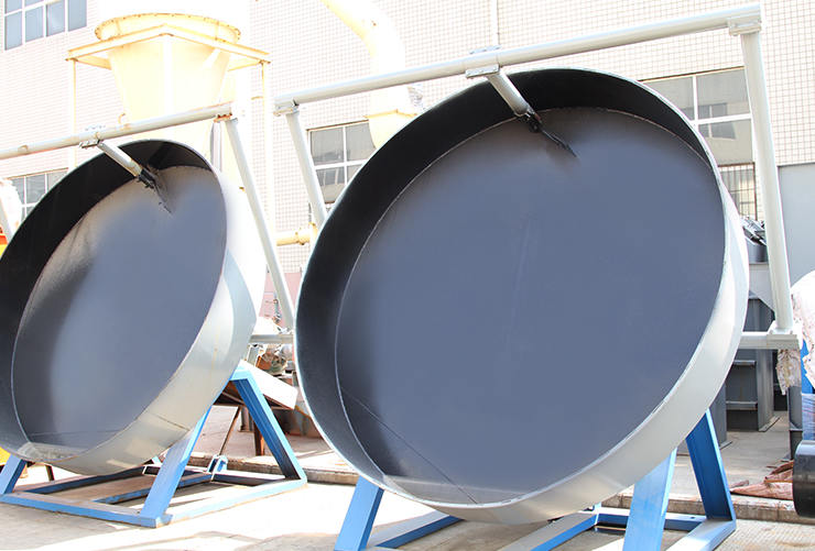 大盤傾角采用角度墊片,調(diào)整靈活方便。盤節(jié)沿盤體可上下調(diào)節(jié),盤節(jié)端部為邊法蘭,料球出盤時(shí)可保證料球不被拉傷、撕裂。成球率高、顆粒圓潤強(qiáng)度大、操作方便。