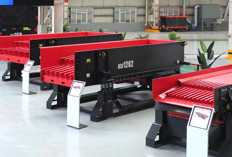 HSF系列重型棒條振動給料機,按照重型工況設(shè)計,適用于石料、建材和冶金礦山行業(yè),為大中型初級破碎設(shè)備提供給料。結(jié)構(gòu)緊湊,抗沖擊力強,外置偏心塊設(shè)計使得給料機振幅調(diào)整方便快捷,獨立的耐磨棒條使得棒條間隙可隨意調(diào)整,很大程度優(yōu)化進入破碎機的物料粒度,提高破碎機產(chǎn)能,降低能耗。